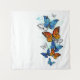 Morfo de mariposa volador, brillante, azul y monarca naranja sobre un fondo blanco. Morfo. Mariposa monarca. Diseño con mariposas.