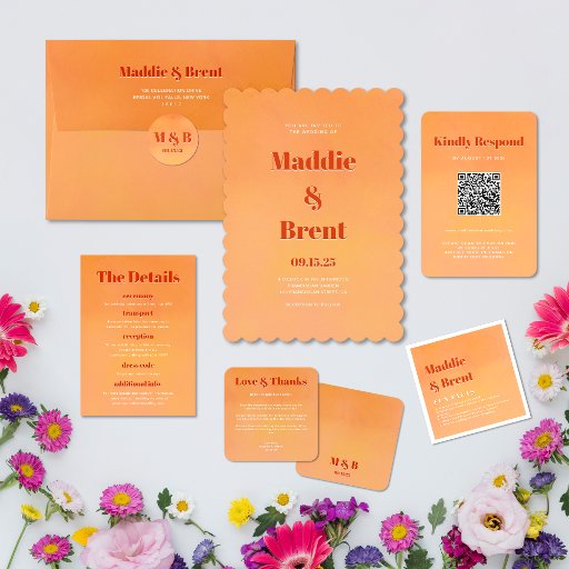 Unique Bold Orange Sunset WeddingDiseñado por Jessica Senarlo