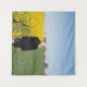 Tapiz Mujer con abrigo negro sobre un campo de hierba ve