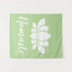 La silueta de loto blanco y el tapiz de la pared verde del té.