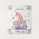 Tapiz Niña Unicornio de Flores de Acuarela Cumpleaños Bi