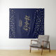 Esta moderna tapicería es perfecta para una fiesta de cumpleaños número 90 con un tema de color azul y dorado chic. Tus invitados disfrutarán tomando una foto con este sofisticado fondo de fiesta y recordarán tu día especial. El diseño presenta tipografía dorada "Noventa" y un fondo de confeti en forma de hexágono. Puedes personalizar el nombre, evento y fecha en la parte inferior de la tapicería. Están disponibles más invitaciones y suministros para fiestas en mi tienda BaraBomDesign. ¡Gracias!