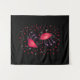 Tapicería extranjera divertida con un ilustracion lindo de caracteres rojos con tres ojos que vuelan con sus alas minúsculas y que sonríen feliz. Hojas del rojo y del gris que vuelan por todas partes. Este ilustracion es técnicas mixtas - hacen el cuerpo de los extranjeros de un dibujo de la acuarela de hojas abstractas y el resto digital se pinta.