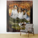 No importa, cómo planeas usar este tapiz... como un tapiz de pared, una colcha de cama o sofá, un mantel o una cortina... será un ocular garantizado. Nuestra obra de arte ha sido creada pensando en el diseño de la pared y tiene una orientación vertical, optimizada para lucir grandioso incluso al mayor tamaño de 88x104". Muestra un retrato y escena combinados de tres hermosos pasteles de Rough Collies en las tierras altas escocesas, creados con un estilo de campo angustiado y complementados con la cita (reemplazable) "Una casa no es un hogar sin un color" y las iniciales opcionales. — NOTAS: Este diseño está hecho para tamaños verticales de tapicería, una variante horizontal para los cubrecamas de cama grande y sofá está disponible por separado. Consulte nuestra categoría de productos "tapiz" o la colección relacionada para ver variantes y más. Bajo petición, la obra puede ser hecha en personalizado con sus propios compañeros, cuidadosamente implementada a partir de sus fotos. — CONTACTO: Para obtener ayuda y solicitudes de adaptación de personalizados, póngase en contacto con nosotros en Zazzle, FB o por correo electrónico, o visite nuestra página de productos relacionada en https://petsdreamlands.com/pid-tap-slst001brca2-v. ¡Disfruta!