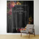Arreglos florales exuberantes en colores brillantes y cálidos que van desde el coral y el rosa hasta el amarillo dorado se combinan con fondos de obsidiana vinetados para darle a las piezas de este elegante conjunto de boda una oscura y temperamental ambientación. Este llamativo telón de fondo para cabina de fotos sería perfecto para una boda de jardín romántico en cualquier época del año. Hemos agregado la caligrafía 'Despedida de soltera' como una opción sugerida. Agregue fácilmente su nombre y fecha usando la plantilla proporcionada. Busque ID829 para ver otras opciones de colores y productos que se coordinan con este diseño.