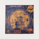 este ilustracion resalta los espeluznantes pero alegres elementos de Halloween, tales como murciélagos, esqueletos y casas embrujadas llenas de carcajadas.