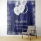 Un tapiz para una fiesta de cumpleaños glamurosa y femenina de 21 años (o de cualquier edad). De fondo azul marino, el color azul es desigual. Decorada con purpurinas de plata falsa, chispas y globos blancos. Personalice y agregue un nombre, edad, fecha.