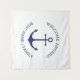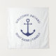nombre de barco personalizado o apellido de familia, Bienvenido a bordo, ancla náutica azul marino y texto y Tapiz de boda blanco
