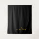 Tapiz de monograma y nombre inicial con guión simple de negro y dorado. Esto hace el regalo perfecto para cumpleaños de dulces 16, boda, ducha de novia, aniversario, ducha de bebé o fiesta de despedida de soltera para alguien que ama el lujo glamoroso y los estilos chic.
