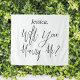 Letrero de "¿Te casarás conmigo?" en blanco y negro con un nombre personalizado. Decoraciones de propuesta para sorprender a una novia o novio y pedirles que se casen contigo.