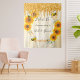Divertida tapicería de lluvia de regalos de verano. Fondo amarillo y blanco con patrón de panal de abeja. Con un marco geométrico de oro falso. Decorado con girasoles rústicos acuarelados de color amarillo claro y naranja, abejas felices y brillo de oro falso que gotea. Con el texto: Novia por casarse. Personaliza y agrega el nombre de la novia. Se puede utilizar como decoración de pared para la lluvia de regalos o como telón de fondo para fotos.