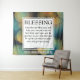 Números 6:24-26 EL SEÑOR TE BENDIGA Iglesia Tapiz. Un telón de fondo de iglesia con ESCRITURAS CRISTIANAS con estilo y texto inspirador basado en la bendición bíblica en Números 6:24-26, que comienza EL SEÑOR TE BENDIGA Y TE GUARDE. El diseño muestra un patrón bokeh de color azul turquesa, azul y dorado con estilo en el fondo. El versículo de la Escritura es PERSONALIZABLE para que puedas cambiar la versión de la Biblia si lo deseas (algunas personas prefieren NIV, NKJV, KJV, etc.). También hay un nombre opcional en la parte inferior, donde puedes agregar el nombre de tu iglesia, texto o simplemente eliminar si se desea, por lo que puede ser un colgante de pared personalizado para animar a cristianos y no cristianos por igual. Este tapiz cristiano sería un gran telón de fondo para tu hogar, iglesia u organización basada en la fe. Otros versículos populares de las Escrituras están disponibles. Por favor, póng