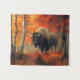 Un diseño cautivador con un majestuoso bisonte situado entre los vivos colores de un bosque otoñal. Los ricos tonos tierra y los detalles intrincados de la escena evocan una sensación de desierto y tranquilidad, lo que la convierte en un hermoso tributo a la belleza estacional de la naturaleza.