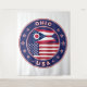 Insignia de Ohio con bandera de Ohio y bandera de los colores de EEUU, forma redondeada. Emblema de Ohio. Sello de Ohio. Colección de Estados Unidos.