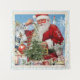 This vintage-inspired design of Old Saint Nick holding a strand of Mistletoe, features a snowflake, a snowman, Christmas ornaments, a Christmas tree, and festively wrapped presents. A perfect touch to your holiday decor!