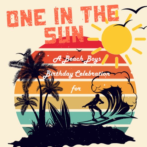One in the Sun Beach Boys Birthday themed tapestry for a first birthday celebration. Large tapestry serves as photo op for birthday party. Use 'FUN FUN FUN' wording for The Beach Boys theme by hinting some themed lyrics or alter wording for a retro beach birthday celebration.