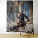 A powerful Oni demon, brandishing a spiked kanabo, emerges through dust and debris within the hallowed halls of a Gothic cathedral. Sunlight streams through stained glass, casting a divine light that contrasts with the primal fury of this legendary Japanese spirit. This is perfect for fans of Japanese Mythology, Dark Fantasy, and Gothic Architecture.