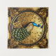 El pavo real sobre un marco ornamental dorado y negro es una pieza impresionante que exuda belleza y elegancia. El establecimiento, rodeado de un rico negro con brillantes acentos dorados, revive los colores vivos del pavo real y sus intrincadas plumas, creando un aspecto de lujo cautivador.