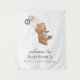 Tapiz Oso con cartel de bienvenida de 3 globos marrones