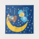 Estadísticas de natalidad de niños pequeños, corteses y coloridas, con un adorable personalizado de oso de peluche con una cinta de proa azul sentada en una luna dormida sosteniendo globos con estrellas amarillas y azules y coloridas, con un fondo azul oscuro. Un bebé y un bebé de gatitos adorables, es fácil de personalizar reemplazando el nombre y los detalles.
