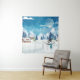 Tapiz Paisaje de invierno del pueblo nocturno con cubier