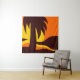 Silueta de árbol de palma en el cielo de la noche naranja con puesta de sol reflejando oro y naranja en el agua