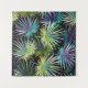 Patrón de acuarela exótico y decorativo sin costura con ventilador de hojas de palma multicolores sobre fondo negro. Ilustraciones de diseño, tela, papel pintado, papel envolvente, decoración casera. Las palmas exóticas se abren paso, acuarelas en negro, belleza en cada pincelada. Hojas de palma multicolores sobre negro: una obra maestra de acuarela para la decoración. fondo, patrón, textura, decoración, acuarela, verano, viaje, naturaleza, árbol, dibujado a mano, ilustracion, hoja, blanco, verde, creativo, sin costuras, hojas, salpicaduras, pintura, planta