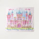 Pancarta de fondo de fiesta de cumpleaños de princesa con un hermoso castillo de acuarela sobre un fondo de acuarela bonito. Este fondo de princesa es fácilmente personalizable con el texto que elijas.