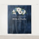 Detalles florales elegantes, románticos y hermosos en acuarela en azul polvoriento, marino y marfil. Sería una adición increíble a cualquier boda azul y blanca o evento especial. Diseños como un banner de bienvenida y también como telón de fondo para fotos