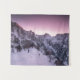 Parado en un maravilloso país invernal después de la puesta de sol en un frío día de invierno con montañas cubiertas de nieve.