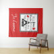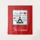 Ilustracion de diseño de textos en París con la Torre Eiffel y corazones rojos decoración en cuadrados negros y blancos sobre fondo rojo