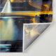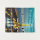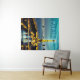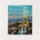 Tapiz en un ilustracion impresionista de París bajo un profundo cielo azul turquesa crepúsculo, con la Torre Eiffel iluminada en amarillo dorado