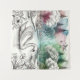 Este tapiz capta un momento de tranquilidad con un majestuoso cisne flotando con gracia en un sereno lago. El entorno es una hermosa escena de parque, con árboles en diferentes tonalidades de lavado de acuarelas, que sugieren diferentes temporadas y horas del día. Delicados bocetos de aves en vuelo añaden un elemento dinámico a la quietud del lago, mientras que el primer plano cuenta con ilustraciones botánicos muy detallados. El conjunto es de paz y armonía con la naturaleza, con un estilo que combina el arte de la línea con los tonos pastel suaves, creando una sensación de paisaje intemporal e idílico.