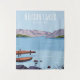 El paisaje del Parque Nacional del Lago Nelson Viaje a Nueva Zelanda. Ilustracion con estilo minimalista para poster, postal, impresión de arte