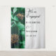 Este elegante stand de fotos de la fiesta de compromiso floral de color verde esmeralda y oro se puede personalizar con su información en la tipografía moderna. Diseñado por Thisisnotme©