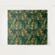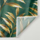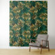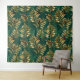 Patrón continuo de oro, joyas, ramas de helecho brillantes y hojas en un fondo verde texturizado de bosque. Helecho dorado.