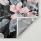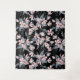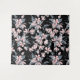 Tapiz con un patrón elegante hecho con un ilustracion acuarela de flores rosadas con hojas y tallos azul-grises. Fondo negro clásico.