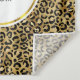 Tapiz de diseño. Zonas exóticas de leopardo negro sobre un fondo dorado. Estilo salvaje pero elegante. Un marco de círculo de color blanco con un borde falso de Relieve metalizado dorado sobre la parte superior con tu texto personalizado dentro.