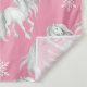Caballos blancos/grises y copos de nieve patrón invernal en un tapiz de fondo rosado