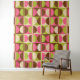 Retro Medio Siglo Geométrico Media Square y Patrón Círculo Marrón Chartreuse & Pink.