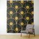Se trata de un elegante patrón de sol abstracto art deco dorado sobre fondo negro. Es un tapiz de gran aspecto para cualquiera que ame los diseños de Art Deco vintage