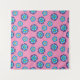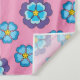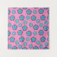 Ilustracion de un patrón azul de flores violeta en fondo rosado para la primavera. Este diseño floral es una idea de regalo para los amantes de las cosas femeninas, de primavera y verano.