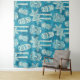 Patrón De Tiki Moderno De Mediados Del Siglo, Retro En Azul Turquesa.