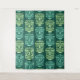 Patrón retro de tiki moderno de mediados de siglo en verde y azul.