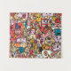 Tapiz De Patrón De Toss Dibujado A Mano De Caricatura. Patrón colorido con diferentes personajes divertidos y dibujados a mano. Genial para niños y adolescentes.