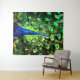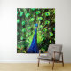 Gorgeous tapestry muestra un retrato de primer plano de un pavo real, pudriendo sus cosas para que el mundo las vea. Toda la vitalidad del color y el auto-orgullo de un pavo real macho son los regalos de la imaginación y la gracia de Dios, pero la ejecución del estilo expresionista de la pintura original que captura esos regalos es solamente del corazón, la mente, la computadora y las manos de la artista, Leslie Sigal Javorek.