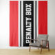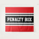This fun sporty hockey design features athletic PENALTY BOX text inside wide black and white center racing stripes against bright red background. The colors and text in this design can be personalized.