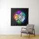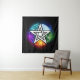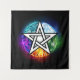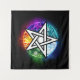 Pentagrama luminoso de dibujo artístico con cinco elementos mágicos, agua, tierra, fuego, astral, aire sobre fondo negro. Pentagrama de Wiccan. Wicca