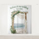 Personalizable Elegant Beach Wedding Backdrop Decoración de su día especial con este cartel de bienvenida de boda personalizable, que presenta un romántico arco floral y un tranquilo escenario costero. Perfecto para celebraciones junto a la playa, este diseño invita a los huéspedes con encanto y elegancia mientras que le permite personalizarlo para que coincida con su historia de amor única.