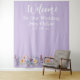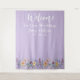 Personalizable Elegante Boda Lavanda Fondo de fondo Creación de una declaración atemporal con este personalizable polvoriento fondo boda azul, diseñado para complementar románticos y refinados temas de celebración. Con delicados acentos florales y una elegante tipografía, es el lienzo perfecto para añadir nombres únicos y fecha boda, lo que lo convierte en una pieza destacada para su ceremonia o decoración de recepción.